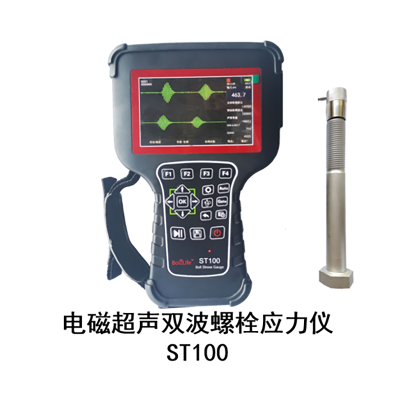 电磁超声双波螺栓应力仪ST100采用电磁超声波双波原位轴力检测技术,可测量在役高强螺栓,无需知道每颗螺栓的原始状态。测量时螺栓上无需涂抹耦合剂,无需打磨平面,可以直接测量螺栓头有凸起文字的螺栓、细径的双头螺柱、有内六角孔的螺栓、有凹面的螺栓。广泛用于在建大型设备的螺栓施工后预紧力验收、在役大型设备的螺栓故障问题处理、螺栓施工工艺的辅助验证和在役大型设备的螺栓轴力巡检等场合。