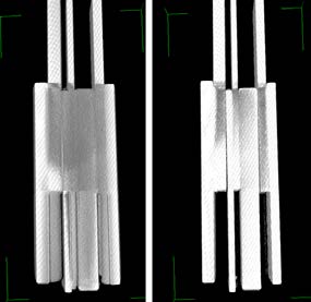 前面的章节中,假设的是,在严重的束硬化的存在下,精确的边缘位置更接近的材料直方图中的峰值,而在没有拔罐效果的是精确的边缘更接近背景峰。本节将讨论是否可以证实这一假说,分析测量时,在一个单一的设置同时具有钢铁和铝对象。在图7的情况类似,图10和图11的测量也已在不同的机器上进行。 One配有Perkin Elmer公司1621检测器(图10)用Varian 2520型检测器(图11),另一种。