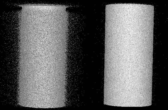 在同一台机器设置:X射线电压电流,放大倍率等四个铝缸,直径范围从10mm至25mm和10微米以下的精度测定,但对不同的CT机,配备了类似的225KV源,但不同的探测器: Varian 2520型(图7a),其检测从40千电子伏至150千电子伏,Perkin Elmer公司制1621(图7b),这是适合于X射线的能量从20千电子伏至450的X-射线能量。而前者产生的小的束硬化(图7a),后者则可以获得更严重的束硬化(图7b)。