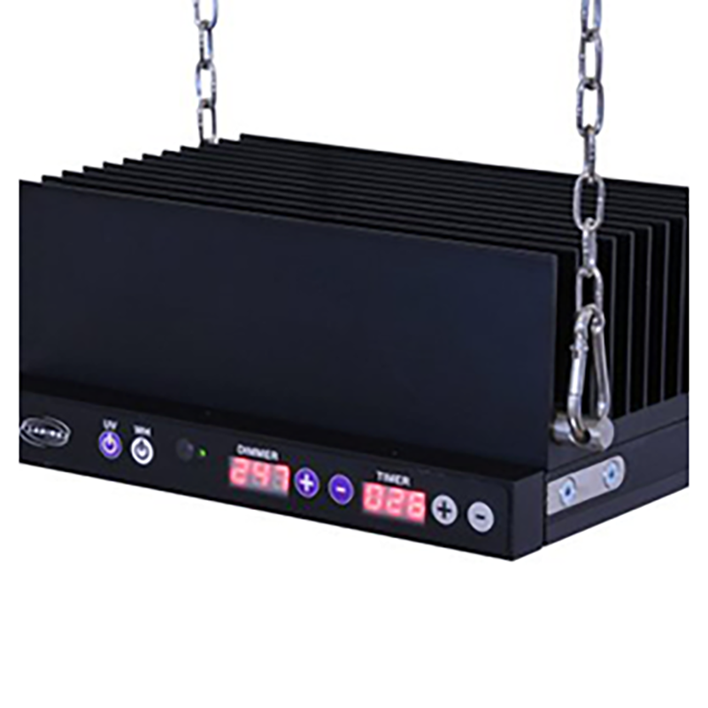 ·GX Orion遥控型(PN:L3100),符合ASTME3022-18和ISO 3059-12标准。紫外线强度约1500-7000 μW/cm2(在38cm处)范围内可调。白光强度约1000 Lux(在30cm处)。遥控器的有效范围为5 m。可单独开关紫外光和白光,改变强度,设置计时器。