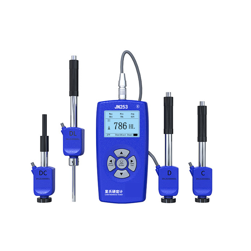 JN253是一款分体式多探头里氏硬度计,探头和主机采用航空插头连接,主机智能识别冲击装置。仪器采用先进的数字双线圈探头技术,抗干扰能力强测量结果精准。内置多种硬度制式,可在里氏(HL)、维氏(HV)、布氏(HB)、肖氏(HS)、洛氏(HRA)、洛氏(HRB)、洛氏(HRC)和抗拉强度(σb)之间相互转换,避免繁琐的人工查表换算。仪器具有2种测量模式:统计模式可以计算最大值最小值和平均值,QC模式可以批量检测来料是否合格。仪器可选配DDCDLC四种不同冲击装置,适用不同的测量需求。