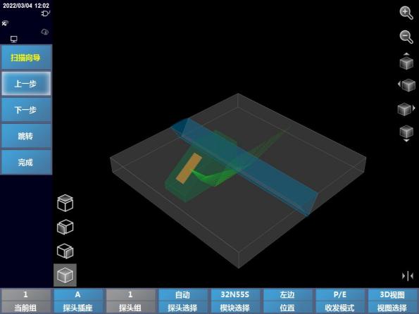 内置3D图像处理引擎实现一维探头的3D工艺仿真和成像检测:支持工件、探头、楔块、声束传播路径的3D显示,提高检测工艺制定的准确性;通过实时将B图像转换为3D数据,实现3D成像检测,检测缺陷显示更加直观完整。